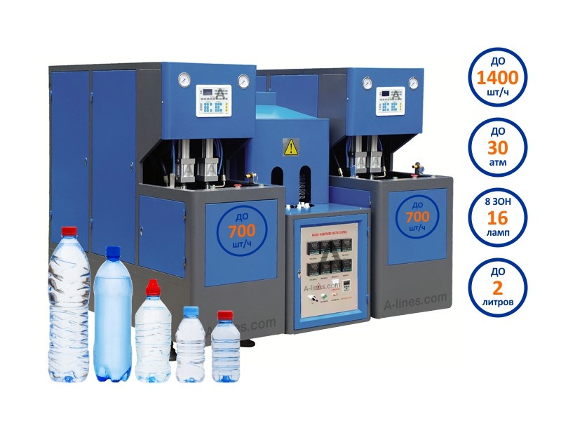Объём выдуваемых ПЭТ бутылок и банок - до 2 литров,
