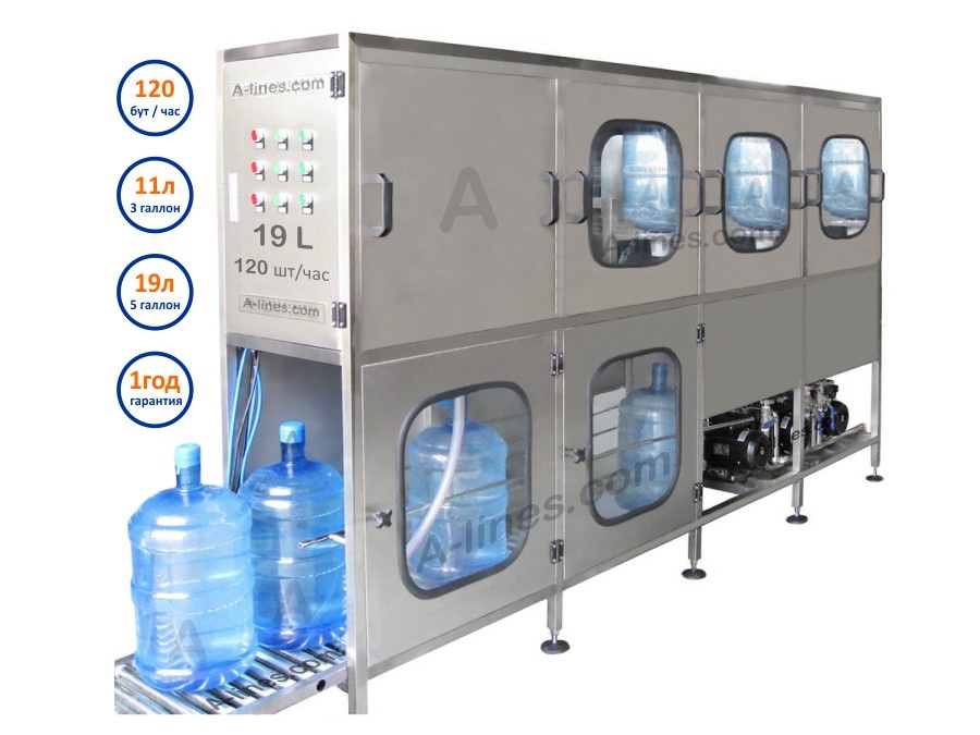 Мойка бутылок 19 литров включает 4 этапа