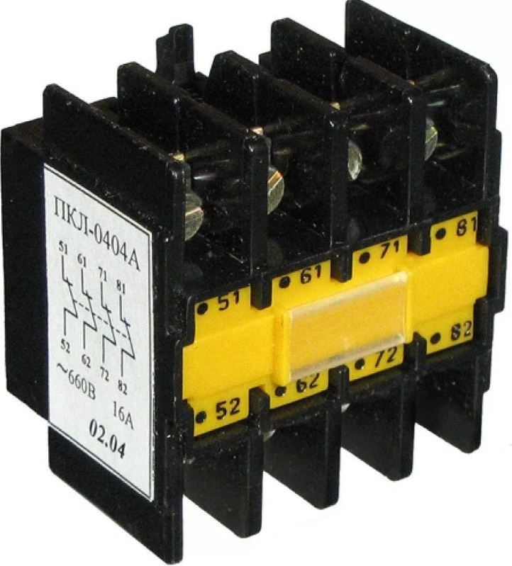 КОЭМЗ продает: Приставки четырех контактные ПКЛ-04, ПКЛ-04М, ПКЛ-22, ПКЛ-22М, ПКЛ-40, ПКЛ-40М служат для увеличения количества вспомогательных контактов. Приставки крепятся механически с помощью защелки. Первая цифра в обозначении приставки обозначает количество замыкающих контактов, а вторая - количество размыкающих контактов. Буква М свидетельствует о степени защиты IP20, а её отсутствие означает, что приставки имеет степень защиты IP00.