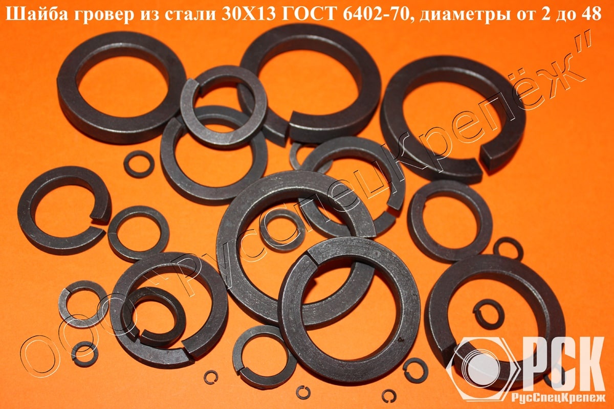 Изготавливаем пружинные шайбы (гровер) для болтов, винтов и шпилек по ГОСТ 6402-70, ОСТ 1 11532-74, ОСТ 1 11533-74, ОСТ 4Г 0.894.202. Исполнение 1. Можем делать все типоразмеры из разных сталей 65Г, 20Х13, 30Х13, 40Х13, БраЖМц, БрКМц, 12Х18Н10Т и другие. Вся продукция сопровождается сертификатом на металл, сертификатом соответствия изделия, паспортом с гарантией.