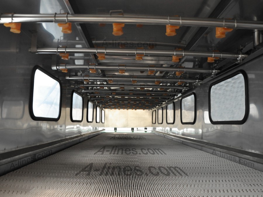 Пастеризатор или стерилизатор работает в составе линии розлива в пэт бутылку, стекло банку, алюминиевую банку, жестяную банку, канистры, флакончики и т.д.