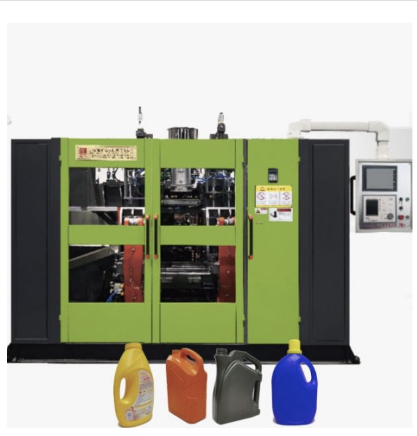 Выдувной станок (экструзионно-выдувная машина) с двумя станциями, мерной полосой изготавливает изделия 1-5 литров.