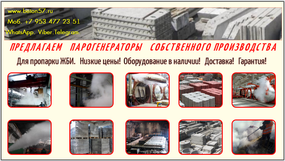 Парогенераторы для пропарочной камеры - без посредников и прочего офисного планктона.Парогенератор предназначен для выработки насыщенного водяного пара температурой от 130 до 160 градусов по Цельсию, с давлением выше атмосферного за счет теплоты, выделяющейся в результате использования электроэнергии.Имеются парогенераторы: на газу , на жидком топливе, на твердом топливе и электрические!- Производительность по пару: от 15 до 5500 кг/час.- Электрическая мощность парогенераторов : от 15 кВт до 160 кВт.- Парогенераторы с рабочим давлением до 0.5 аТм- Парогенераторы с рабочим давлением до 6 аТм.- Имеются парогенераторы: на газу , на жидком топливе, на твердом топливе и электрические!Цены на парогенераторы от 65.000 до 250.000 рублей.Парогенератор используется в различных отраслях экономики:для пропаривания перекрытий и арматуры в зимнее время перед заливкой бетона на строительных площадках;для пропаривания железобетонных изделий на предприятиях по изготовлению ЖБИ;для гидротермической обработки продуктов с целью улучшения их технических и пищевых качеств;для санитарно-гигиенической обработки тары и оборудования линий производства различных продуктов;для пропаривания и сушки древесины, фанеры, картона;для пропаривания почвы в теплицах и парниках, для запаривания кормов в животноводстве;для отопления; для разогрева застывших вязких жидкостей и сыпучих материалов;для подогрева гальванических ванн;для очистки поверхности перед покраской;в банно-прачечных предприятиях и т.дВидео наши парогенераторы и паровые котлы в работе! https://www.youtube.com/watch?v=mvtAp2hHc8Ehttps://www.youtube.com/watch?v=tItZyyrQKfAНадежное и качественное оборудование от нашей компании. Опыт производства 17 лет! Для снижения цен разработана программа прямых поставок от производителя.