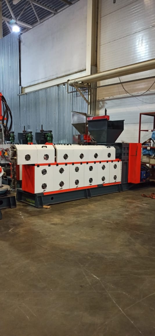 - Двухкаскадная линия грануляции, для мягких отходов полимеров. Горячая резка. Принудительная подача. Шнеки 125*3000 и 125*1200. 55 и 22 кВт. Вертикальная экструзионная голова Ф260 3 ножа 2,2 кВт, частотник. Водяной насос, сушилка,Производительность250 кг/ч