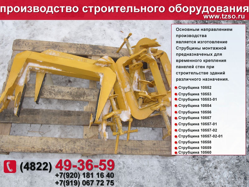 Бесплатная доставка до терминала ТК. Отправка по РФ. Собственное производство строительной оснастки и грузоподъемного оборудования. Широкий ассортимент строительного оборудования (траверса для монтажа колонн, кондуктор, обойма и пр.) Более подробную информацию уточняйте у наших специалистов.