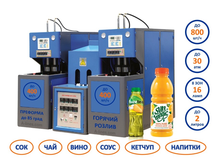 Горячий розлив, необходимо использовать пэт преформы для горячего розлива.