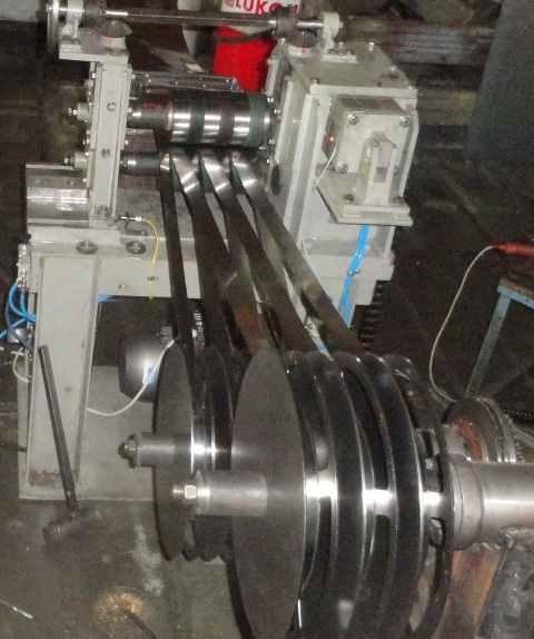 Изготавливаем ножницы дисковые для роспуска ленты в автоматическом режиме шириной до 63 мм модель НД-63, на общей станине смонтированы устройство размотки, резки и намотки ленты
