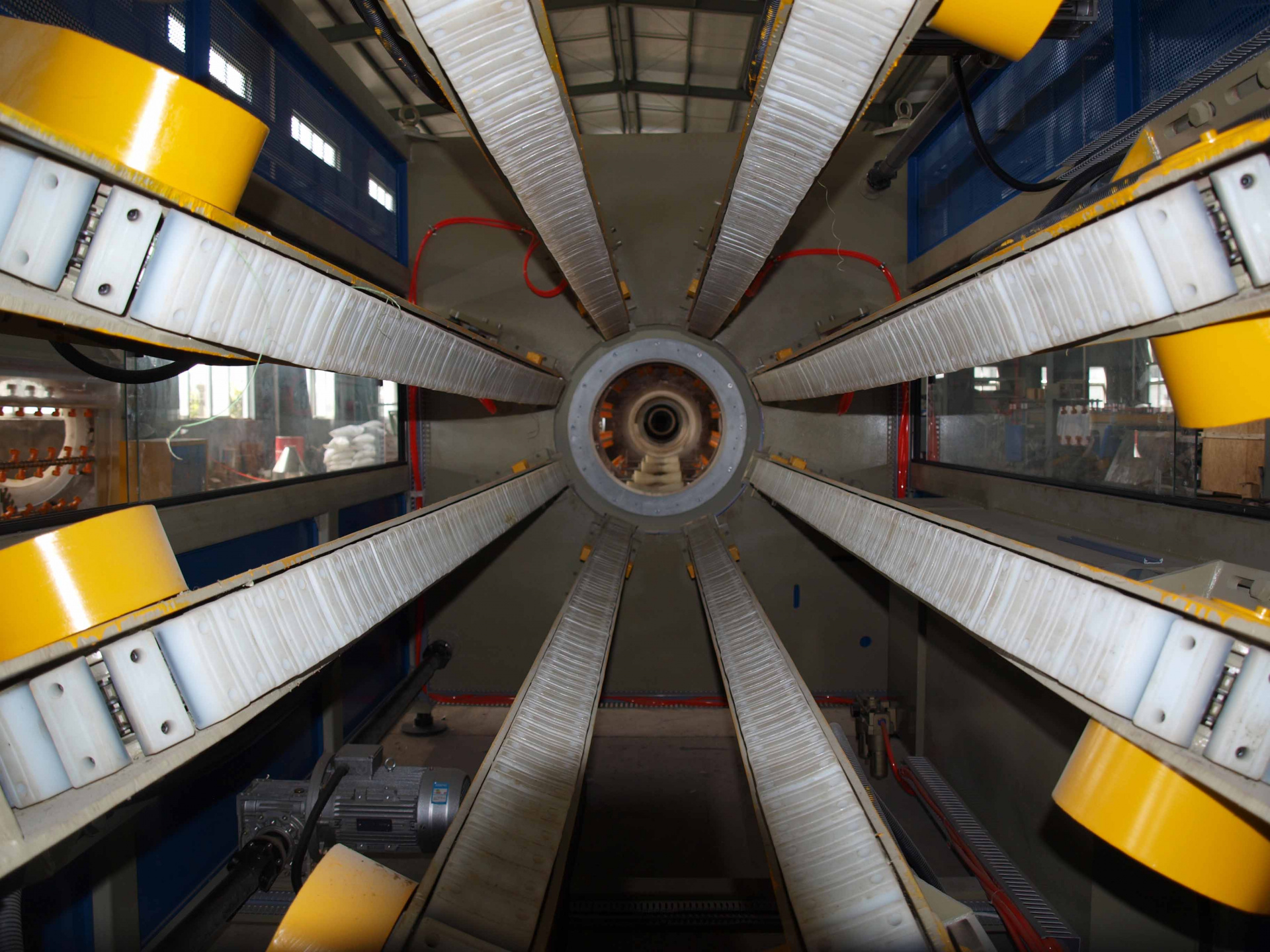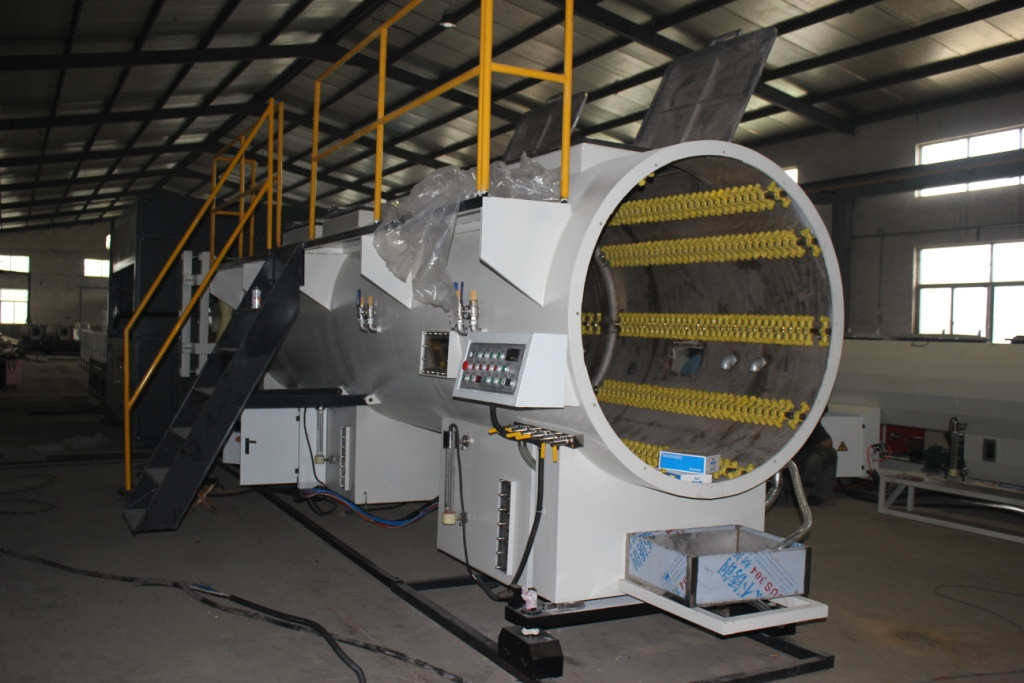 Данная линия для производства труб-оболочек большого диаметра из полиэтилена, а ее продукция в основном применяется к наружному слою тепло-изоляционных труб (средний слой вспененный из ППУ, а его внутренний слой представляет собой стальную трубу) , Кроме того, данная линия могут выпускать водопроводных и канализационных труб и т.д.