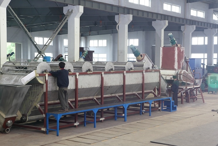 5. Замачивание. Если есть сложно отмываемая грязь, используется Установка замачивания. Сырьё попадает в ванну с химией для замачивания. Если в ней нет необходимости, можно исключить из линии.