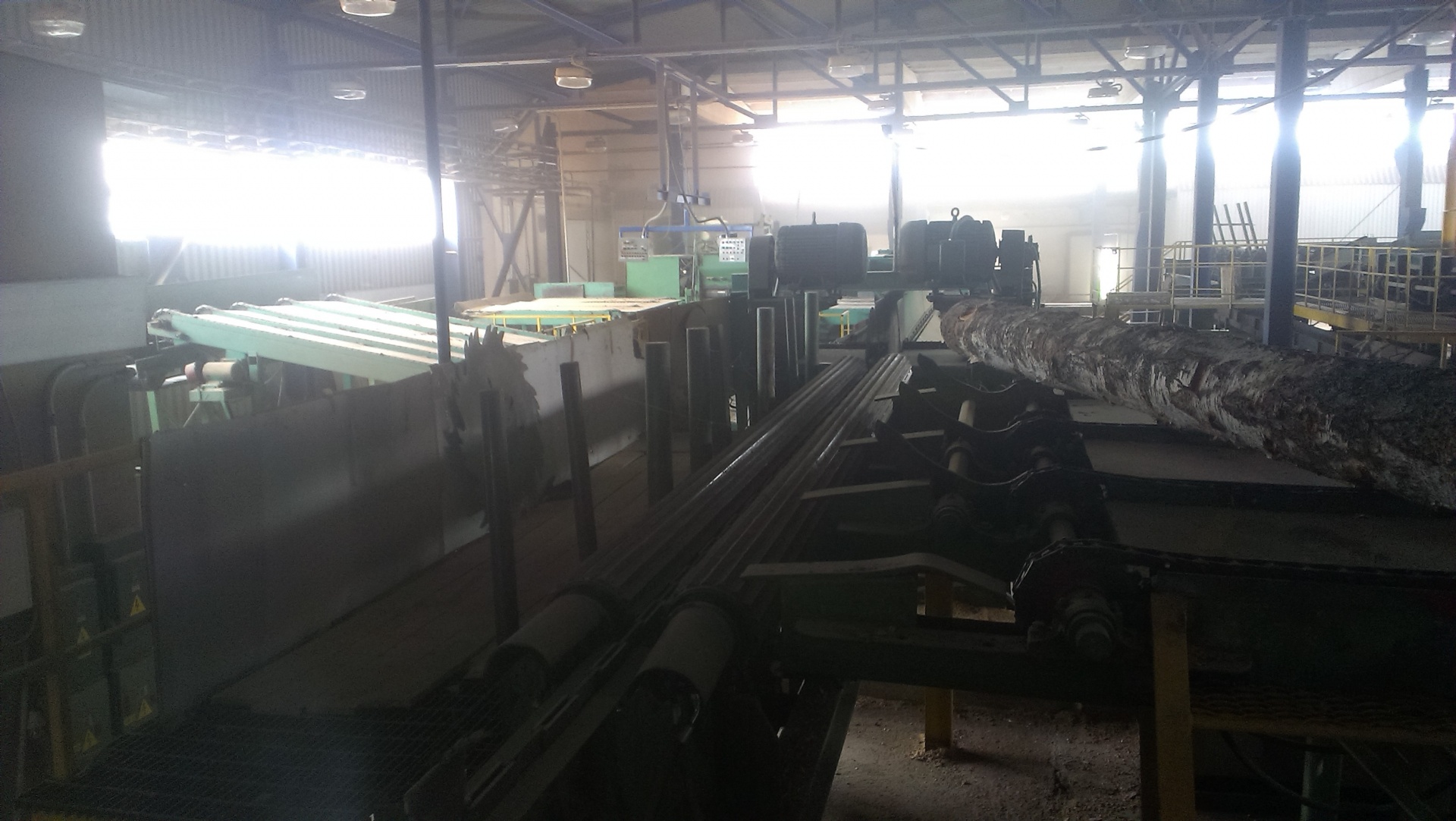 Линия станков и транспортеров обеспечивает распиловку бревна и сортировку получаемого пиломатериала производительностью 24 000 м3/год при односменном режиме работы.