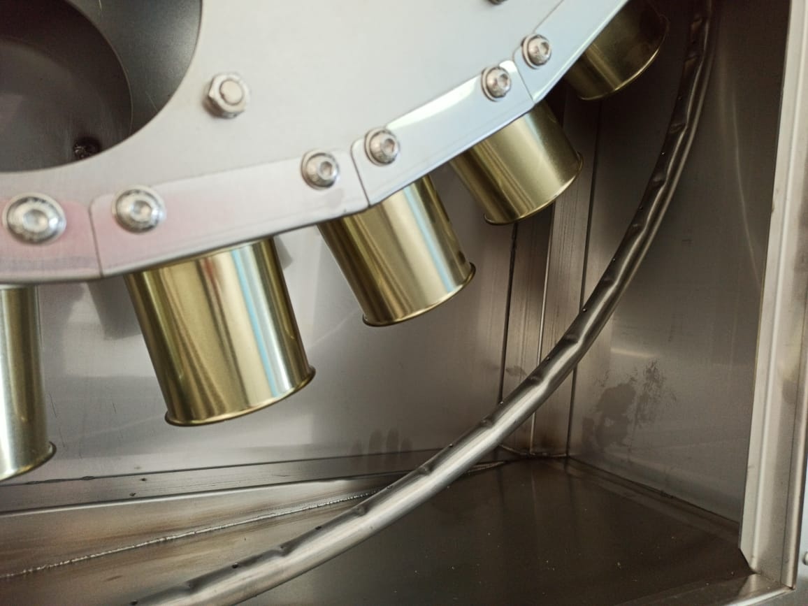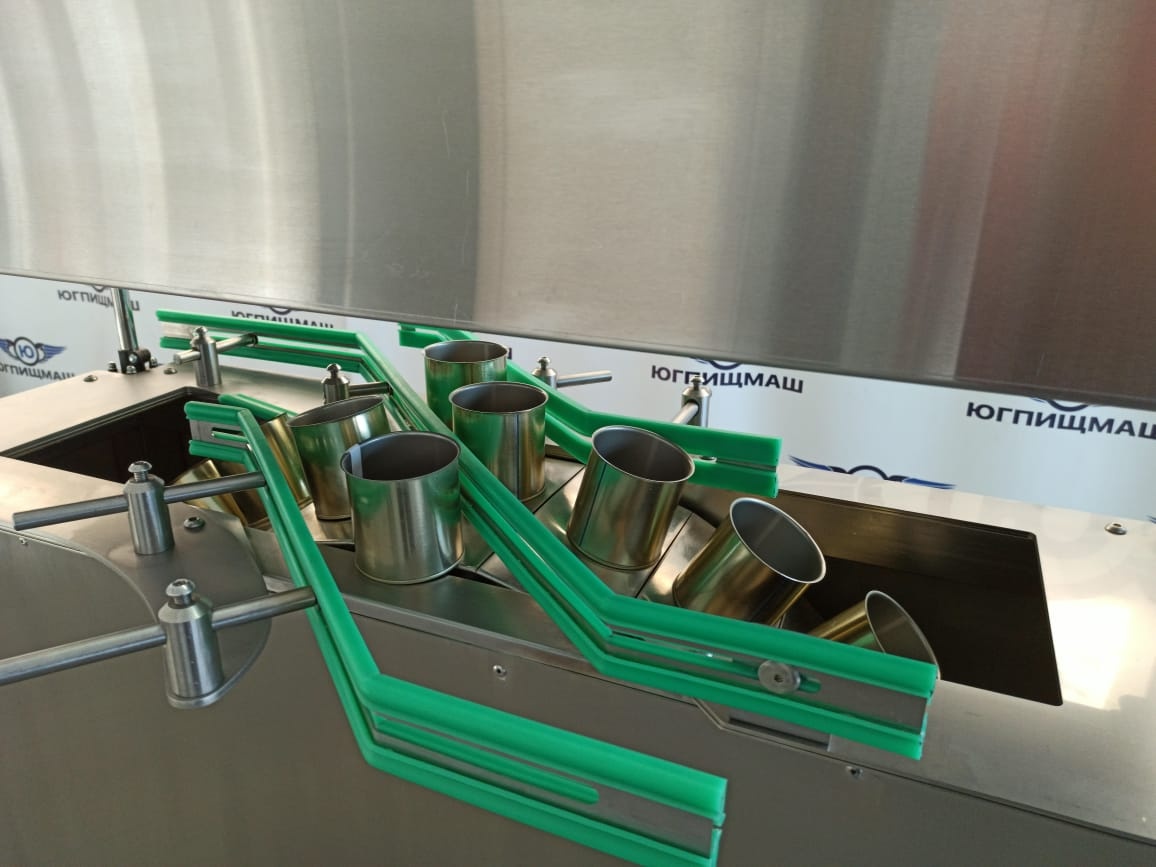 Устройство ошпарки банок предназначено для обработки жестяной тары паром перед технологическим этапом дозирования.