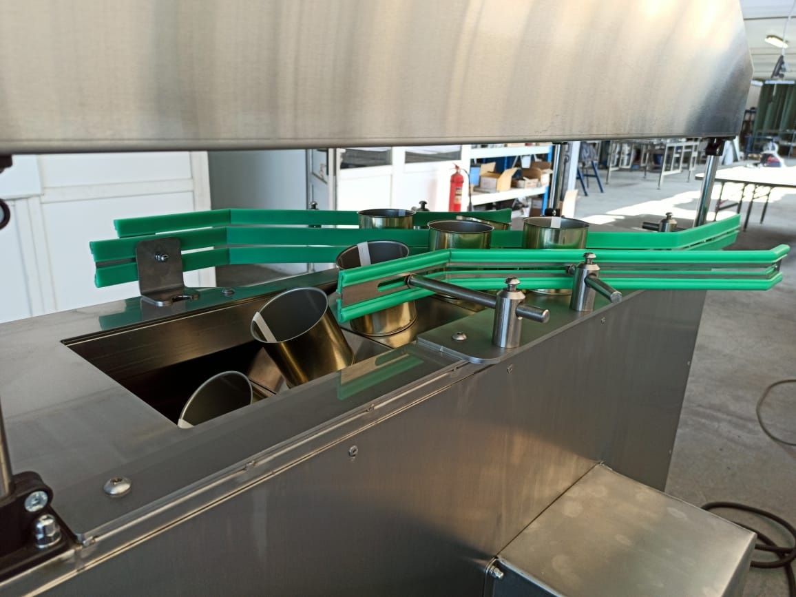 Преимуществом является возможность перенастройки под разные виды жестяных банок, простота конструкции и надежность.