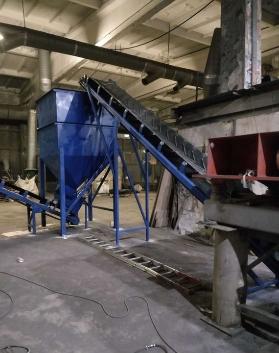 Сортировочные линии для сыпучих материалов. Бункер питатель с конвейером или автоматическим затвором. Конвейеры с отсекателями потока. Гидропрессы. Сита барабанные.