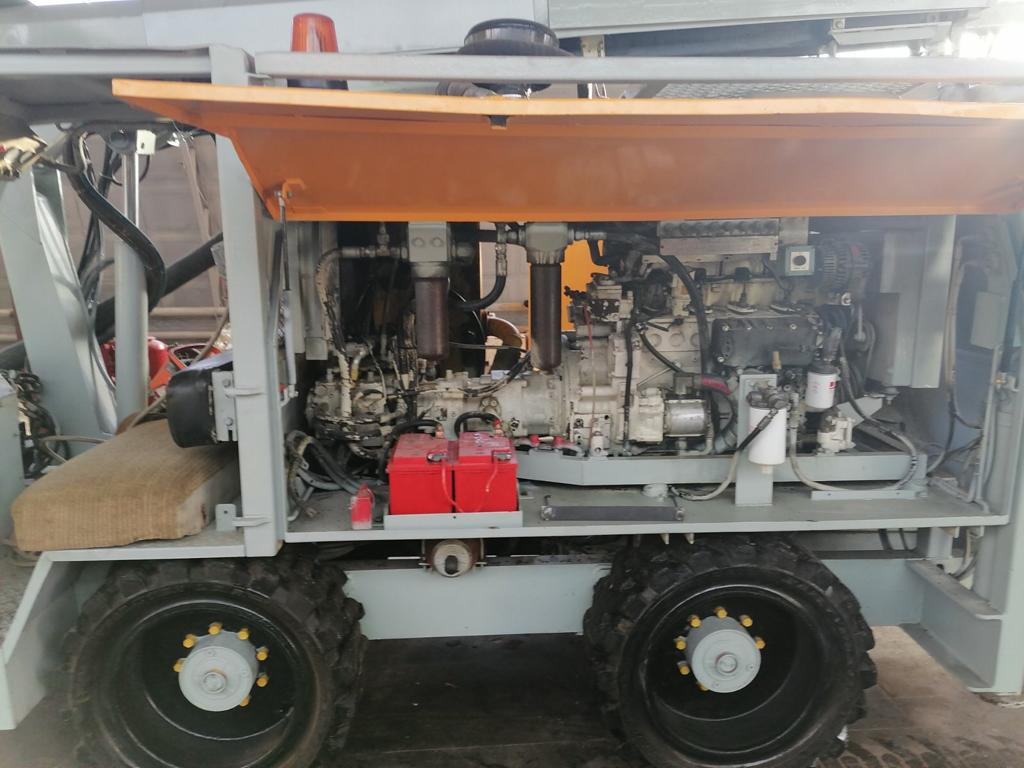 Установка оснащена независимым, бортовым приводом и гидравлическим дисками на четырех колесах, что позволяет разворачиваться по собственной длине и с легкостью передвигаться вокруг шахты.