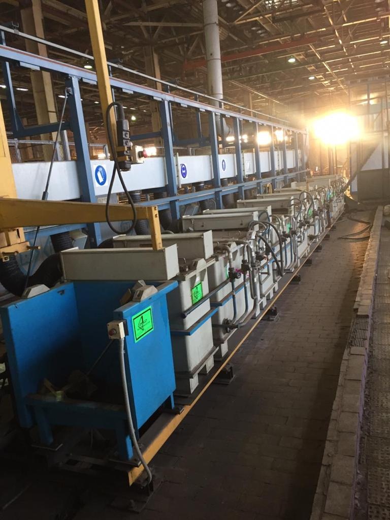 (гальваническая линия) Линия автооператорная автоматическая химической обработки для контроля прижогов АЛХ-247 (101772.00.000), с ЧПУ. Без выпрямителей. 19шт ванн, размер ширина 450, длина 750, глина 750мм, 2009 г.в. Совсем мало поработала, стоит на фундаменте, можно попробовать включить на сухую. цена договорная. локация Набережные Челны. Есть видео в работе