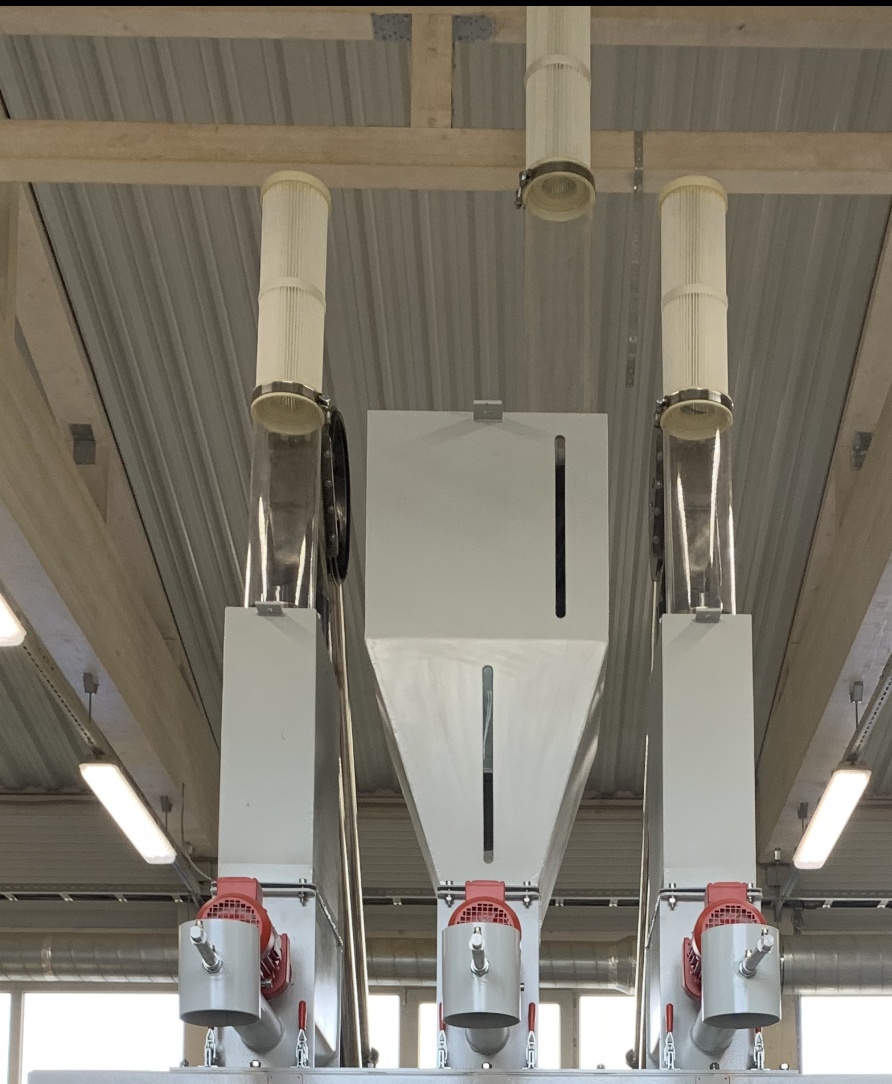 Каждый бункер для порошкообразных наполнителей может быть оснащён мешалкой для предотвращения арочных пустот и подвисаний в порошковой массе наполнителя