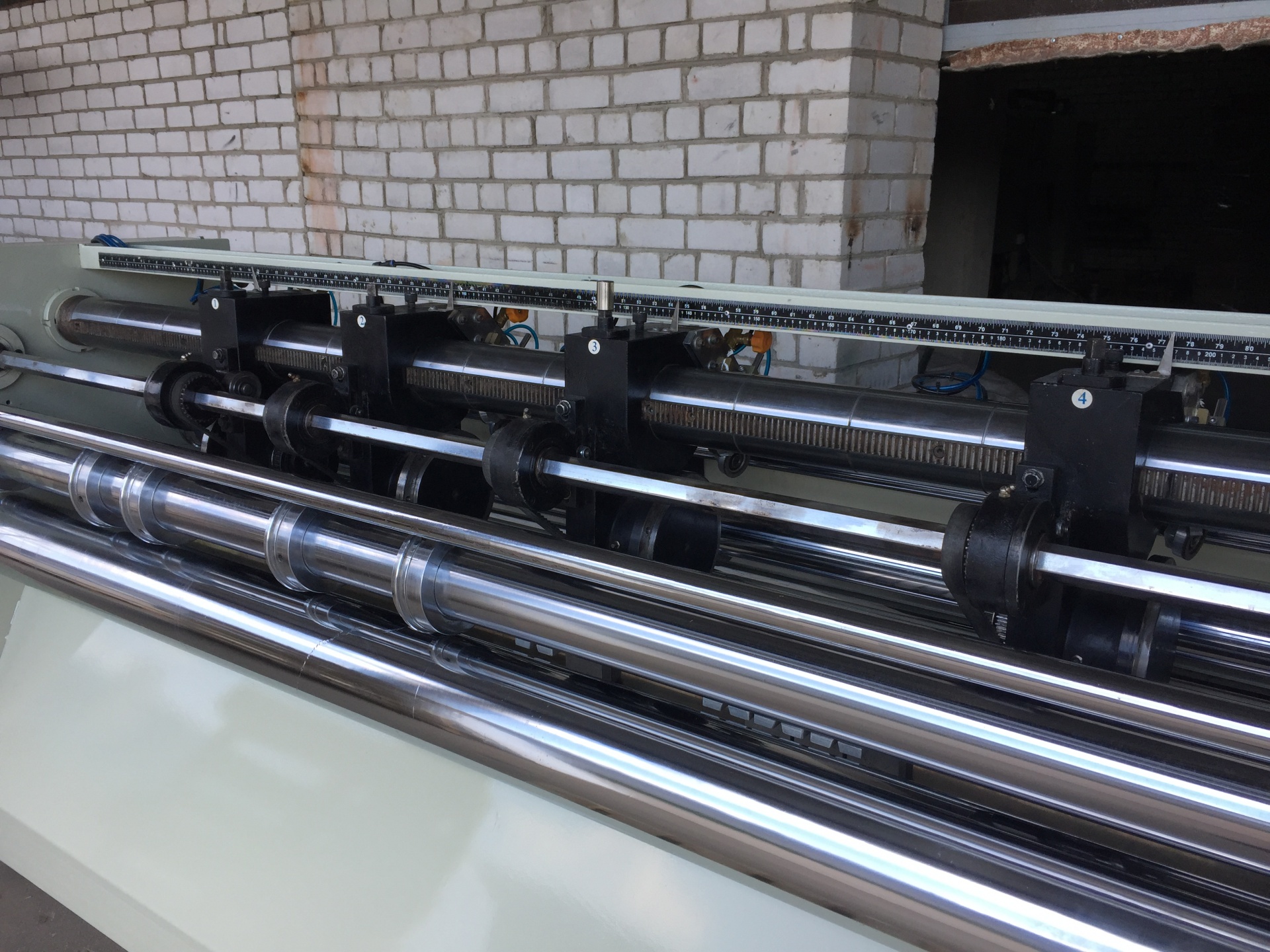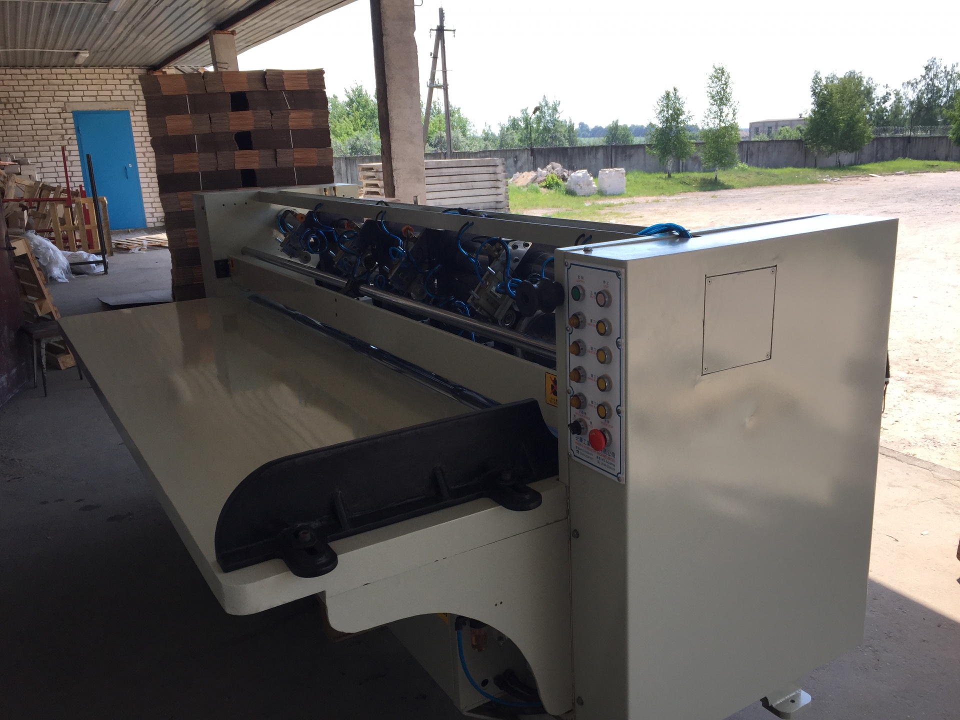 Предназначен для резки и биговки картона, гофрокартона (4 ножа, 6 биговок). Оснащен автоматической заточкой ножей и централизованной системой подачи смазки.