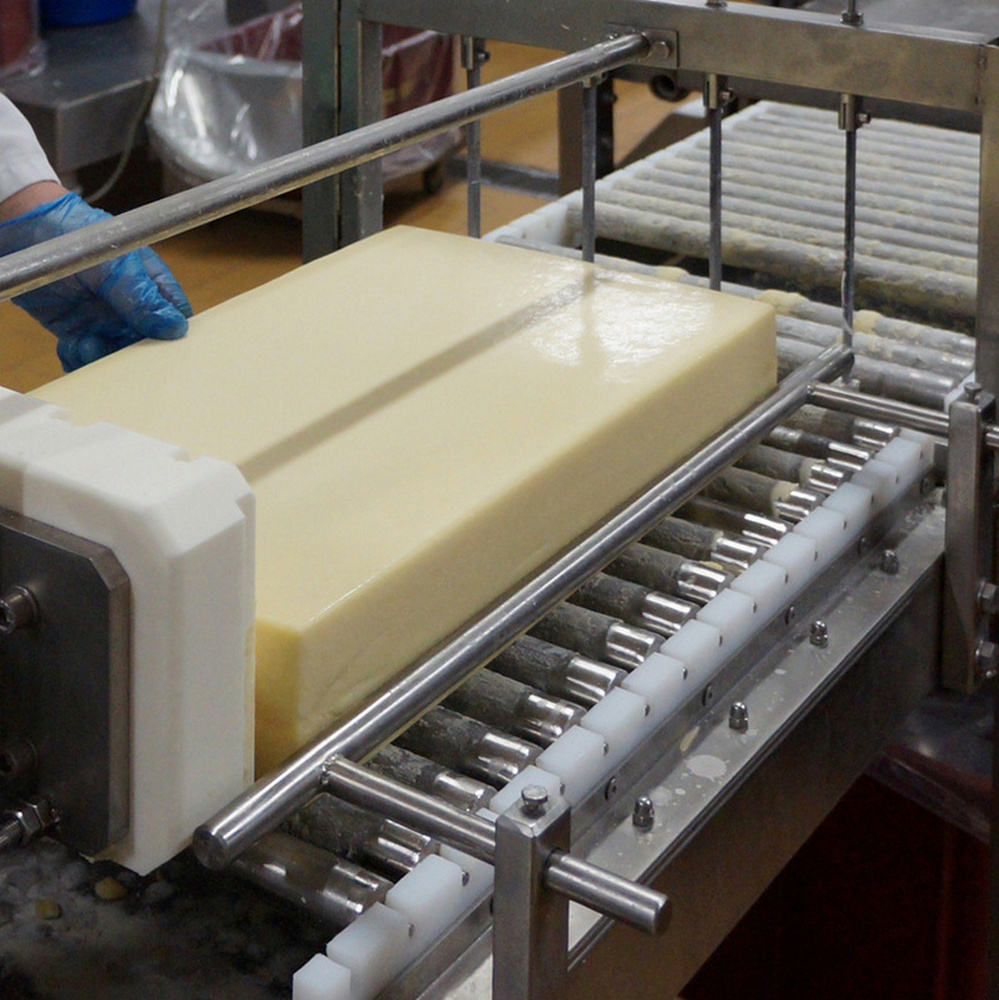 это высокопроизводительная машина способная длительное время быстро нарезать бруски сыр на выбранное количество частей в зависимости от расстояния между ножами.
