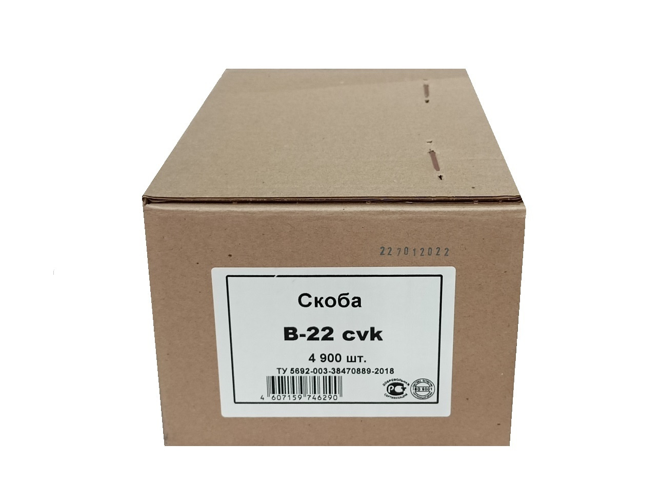 В качестве расходного для сшивания картона применяется скоба В-16, скоба В-19, скоба В-22. Это таже самая омедненная скоба 35/15, скоба 35/18, скоба 35/22 — только в другом варианте фасовки. Таже самая скоба применяется и для запечатывания, т.е. закрытия короба. В зависимости от толщины листов картона, которые нужно соединить, то скоба 35/15, скоба В-19 и другая скоба для картона бывают с различной высотой ножки от 15 мм до 22 мм. Омедненние или цинковое покрытие скобы придаюет ей стойкость к корродированию. Картон будет чистым, без подтеков ржавчины. Скоба 35/18 или скоба В-19 мм работает с иснтрументом — пневматический степлер PA-15/18и РА-18/22 или механический степлер МА-15/18, МА-18/22.