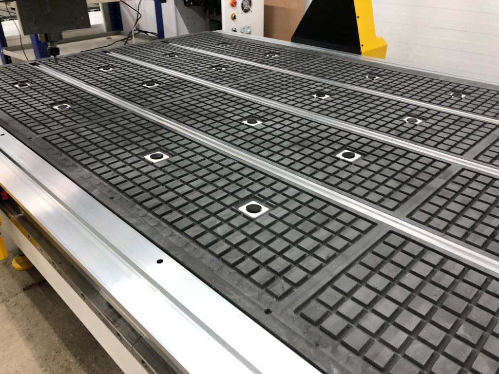 Вакуумный стол на 18 зон с Т-паз для дополнительного крепления струбцинами.