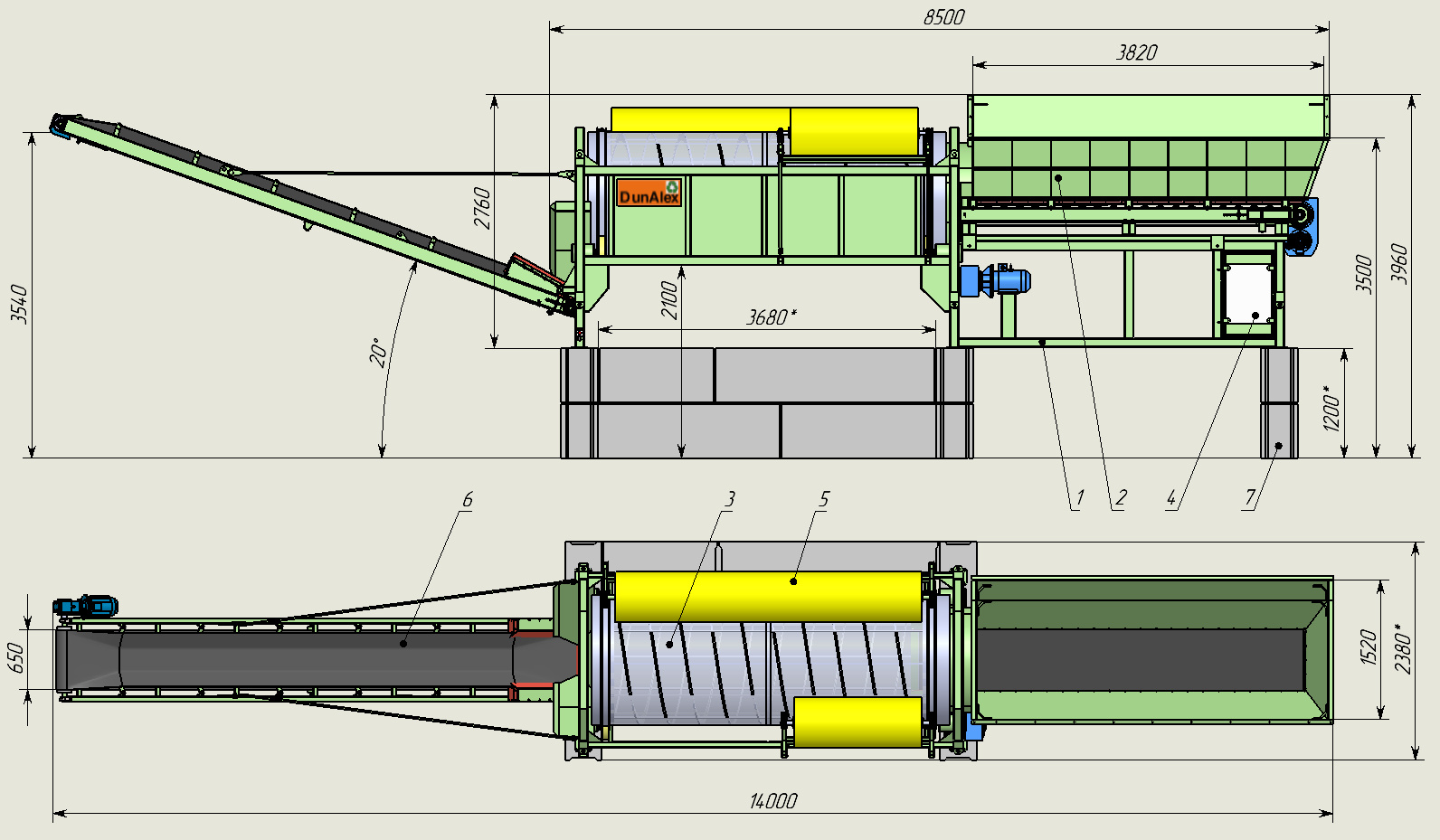 - Диаметр просеивающего барабана 1.4 м.