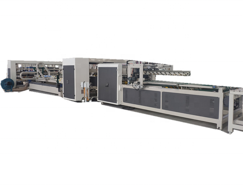 Он может складывать, склеивать, подсчитывать и складывать обычный картон с прорезями в картонные коробки автоматически на высокой скорости, складывать, склеивать, подсчитывать и складывать в одну линию.