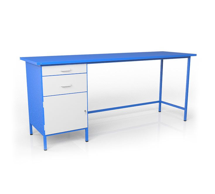 Верстак слесарный однотумбовый ВСТ 21/3000 имеет каркасное основание, выполненное из профильной трубы квадратного сечения, обшитое листом металла. Столешница верстака - влагостойкая фанера 24 мм, накрыта листом металла 1 мм (есть возможность изменения толщины металла до 20 мм). В опорах стола установлены пластиковые подпятники (доп. опция - установка регулировки высоты стола). Тумба в верстаке имеет малый и большой ящик под инструмент, ящики выдвигается на полозьях (также ящики можно установить на шариковые направляющие), далее расположена распашная дверь на замке. За дверью одна фанерная полка толщиной 10 мм. При помощи тумбочек серии ТС вы можете выбрать для себя более удобную модель верстака, возможность переставлять тумбу слева направо либо две на выбор вместе. Все это дает более 500 моделей слесарных верстаков. Комплектуем верстаки тисками, станками, защитными экранами.