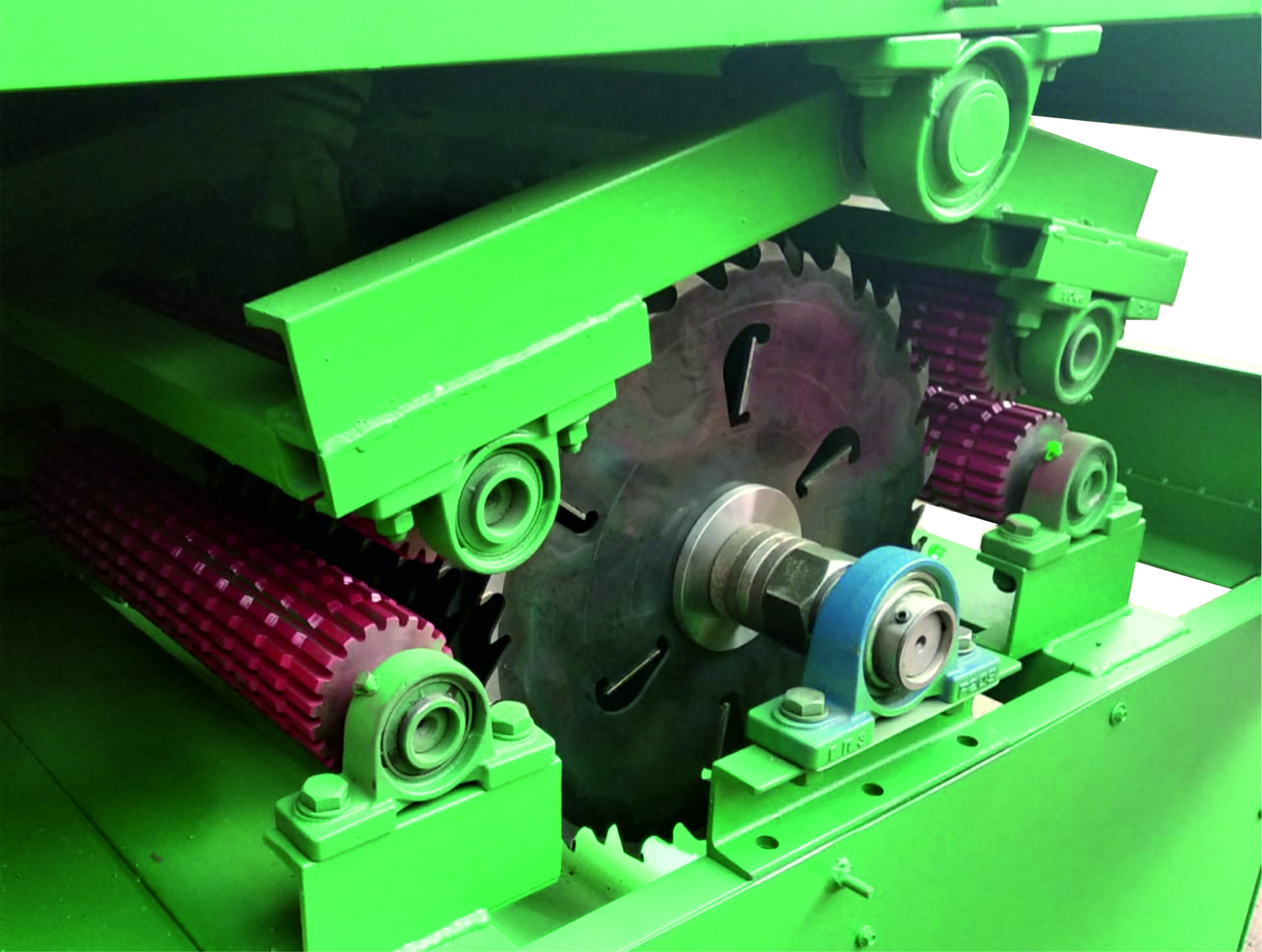 На станках может устанавливаться до 10 дисковых пил, диаметром до 450 мм. При пилении бруса меньшей высоты, можно использовать пилы меньшего диаметра – это позволяет сократить ширину пропила и, следовательно, повысить процентный выход готового пиломатериала.