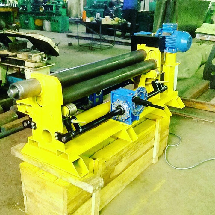 Трёх - валковые с асимметричным расположением валов. Электромеханический привод ведущих валов и регулировки заднего (бокового) вала. Применяются для формирования из листовых материалов обечайки цилиндрической, овальной, конической. Путем проката листа метала, через валки агрегата.