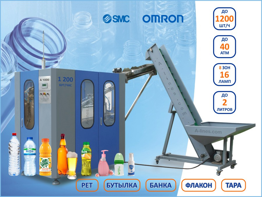 Автомат выдува ПЭТ бутылок, тары, банок, бутыльков, флаконов, канистр, контейнеров до 2 литров.