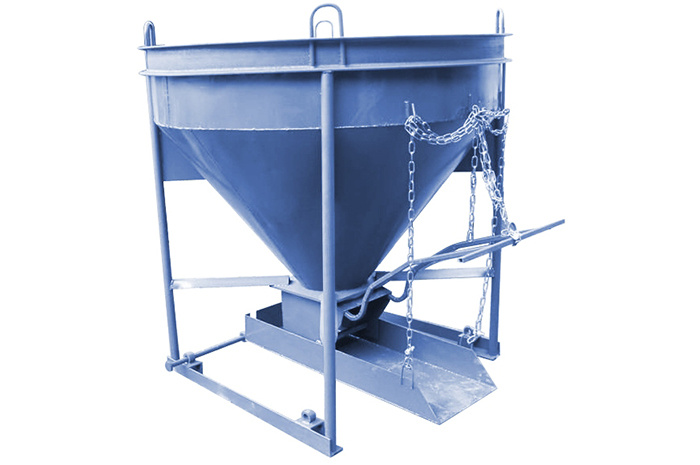 Бункер используется в промышленных целях для заливки форм для производства различных железобетонных изделий. Также его применяют при строительстве для удобства заливки фундамента, полов и других целей. Вес бункера, рассчитанного на максимальный объем загрузки, составляет 305 кг, поэтому его легко можно транспортировать с одного производственного участка на другой.