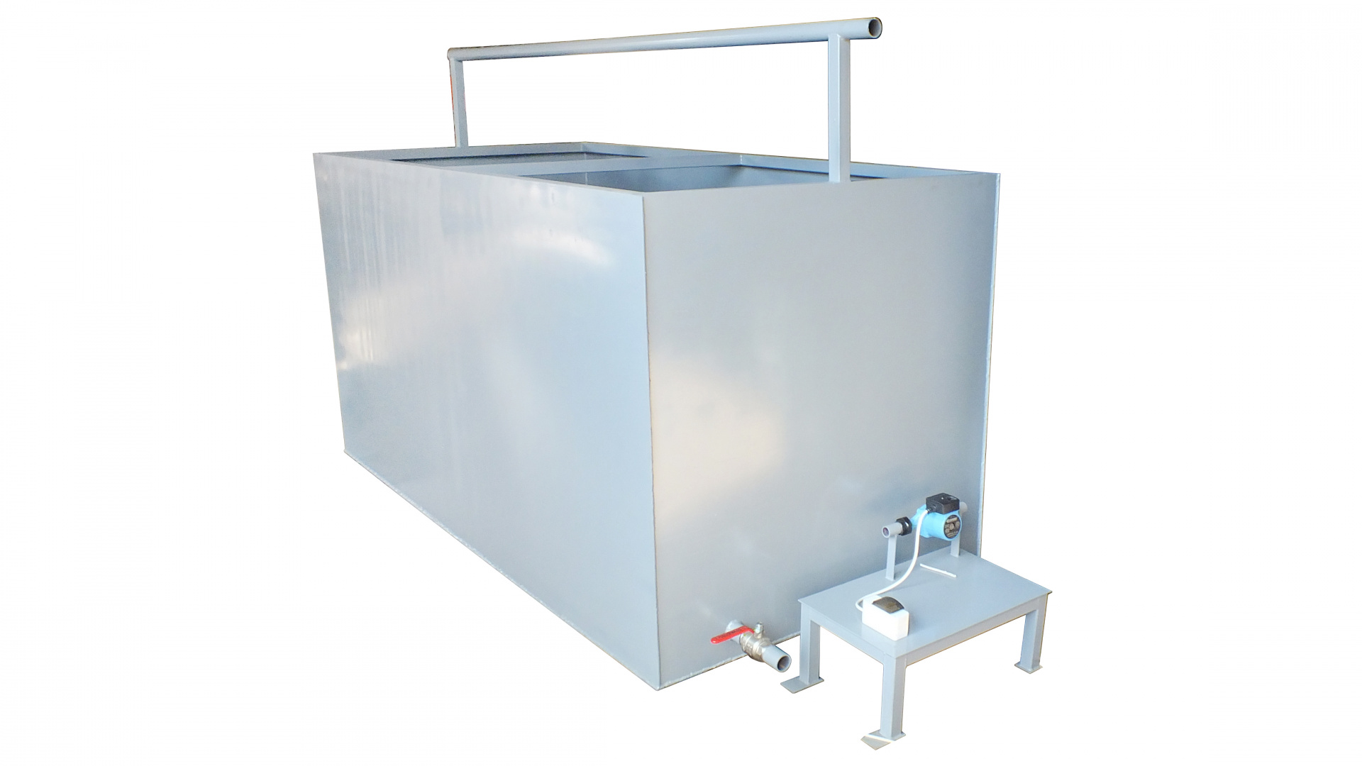 Представляет из себя резервуар, наполняемый водой с помощью проведенной к нему линии водопровода. Обеспечивает охлаждение производимого рубероида до необходимой температуры. Данное устройство способно увеличить производительность линии, а также повысить качество выпускаемого материала.