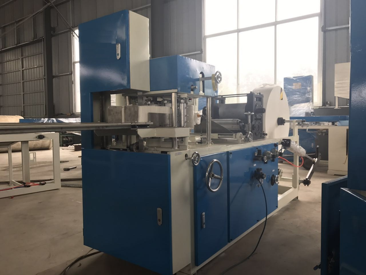 Машина для бобинная бумага в прямоугольную или квадратную бумагу для салфеток после тиснения, складывания, электронного счета, нарезки на аккуратные. Процесс производства только один раз. Устройство может автоматически выбивать и складывать, без искусственного складывания.
