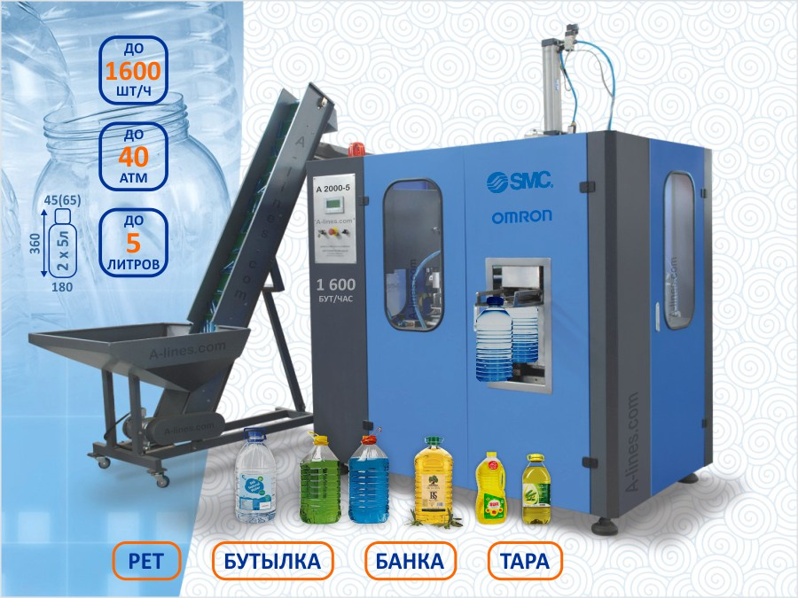 Автомат выдува ПЭТ бутылок, тары, банок, флаконов, бутыльков, канистр, контейнеров до 5 литров.