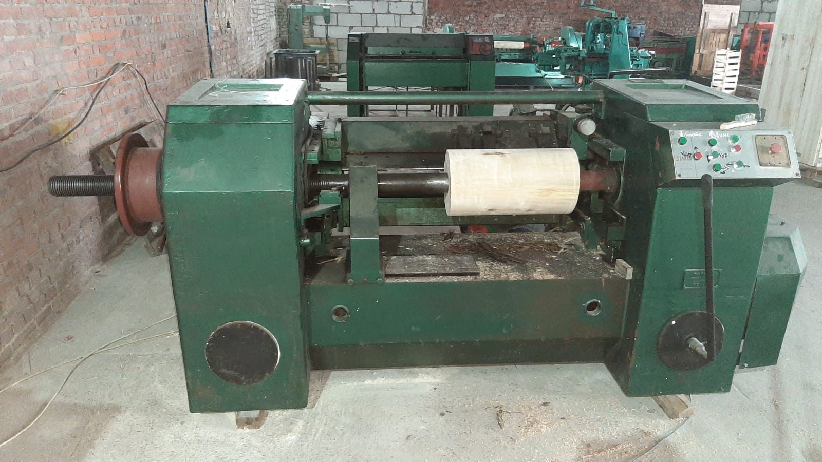 Станок для производства шпона для ящиков и для производства фанеры малого размера.