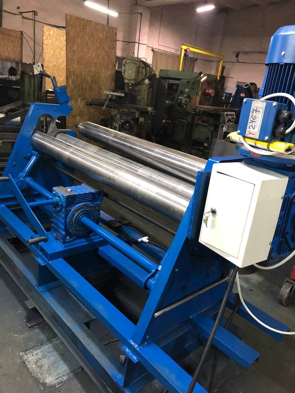 Трёх - валковые с асимметричным расположением валов. Электромеханический привод ведущих валов и регулировки заднего (бокового) вала. Применяются для формирования из листовых материалов обечайки цилиндрической, овальной, конической. Путем проката листа метала, через валки агрегата.