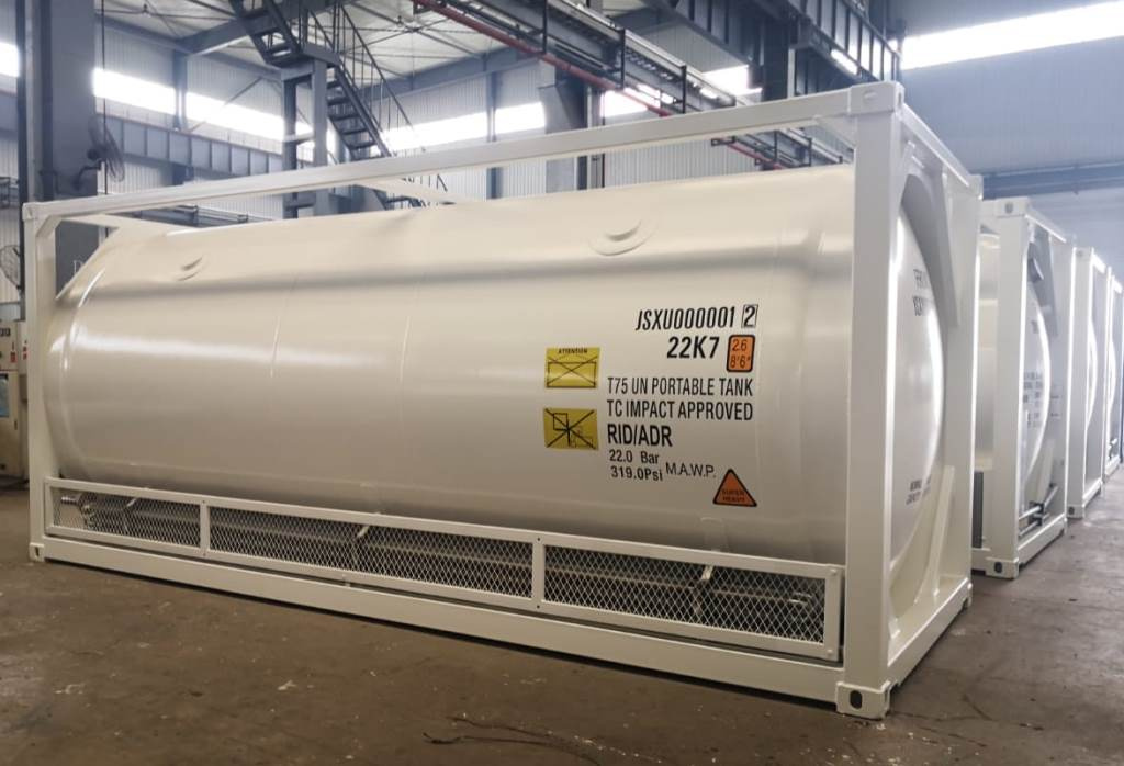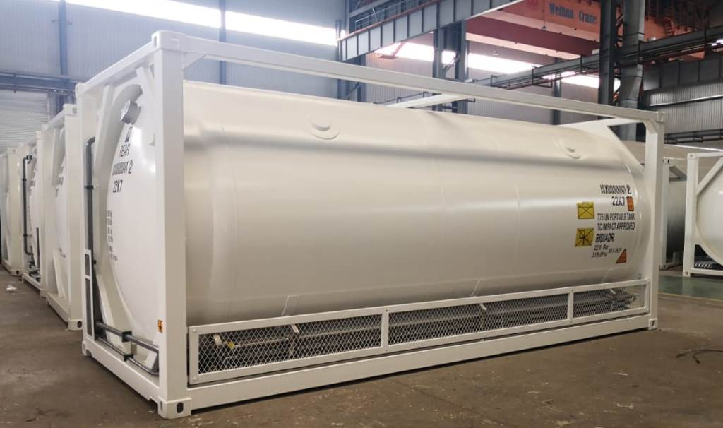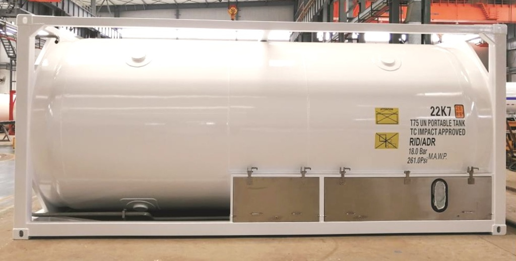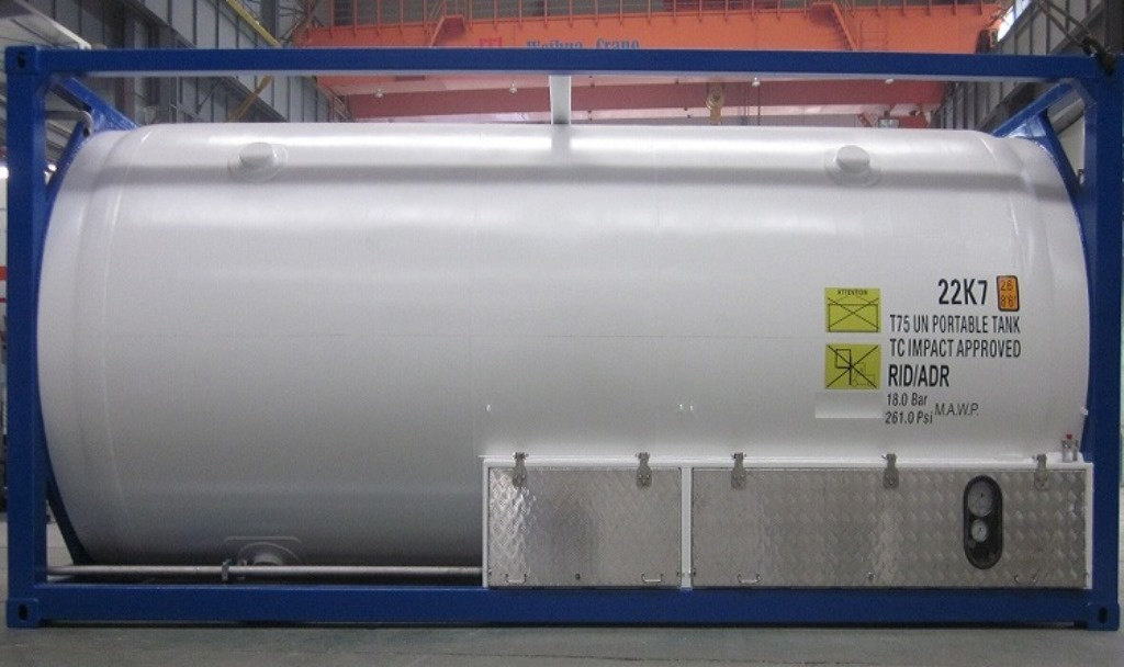Контейнер-цистерна (танк-контейнер) объём 20,5м3 тип Т75 для хранения и перевозки технических газов и других химических легковоспламеняющихся веществ, требующих соблюдения определенного давления в цистерне.