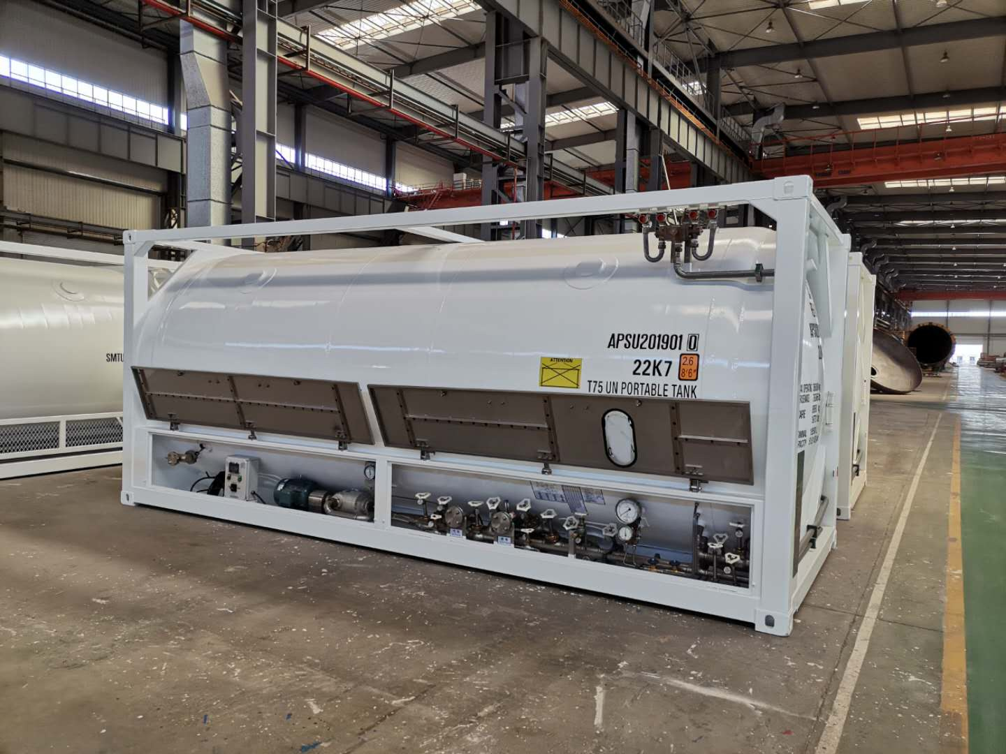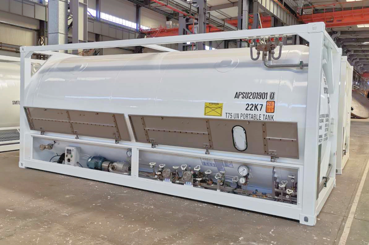 Контейнер-цистерна (танк-контейнер) объём 19,5м3 тип Т75 для хранения и перевозки двуокиси углерода LCO2 (UN2187) углекислого газа и других химических легковоспламеняющихся веществ, требующих соблюдения определенного давления в цистерне.
