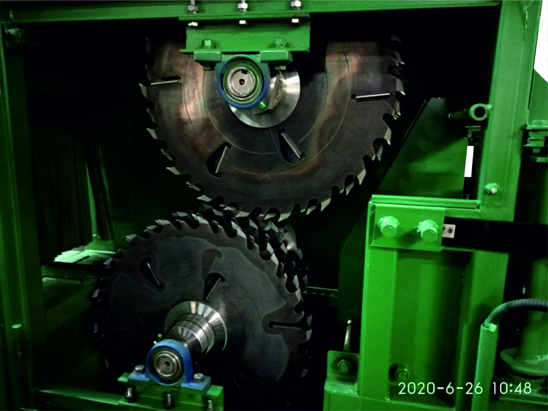 Станок сделан по схеме с двумя валами, каждый пропил выполняется двумя дисковыми пилами расположенными в одной плоскости, что позволяет получить приемлемую толщину пропила и использовать относительно недорогие и доступные стандартные пилы различных производителей диаметром 630 мм.