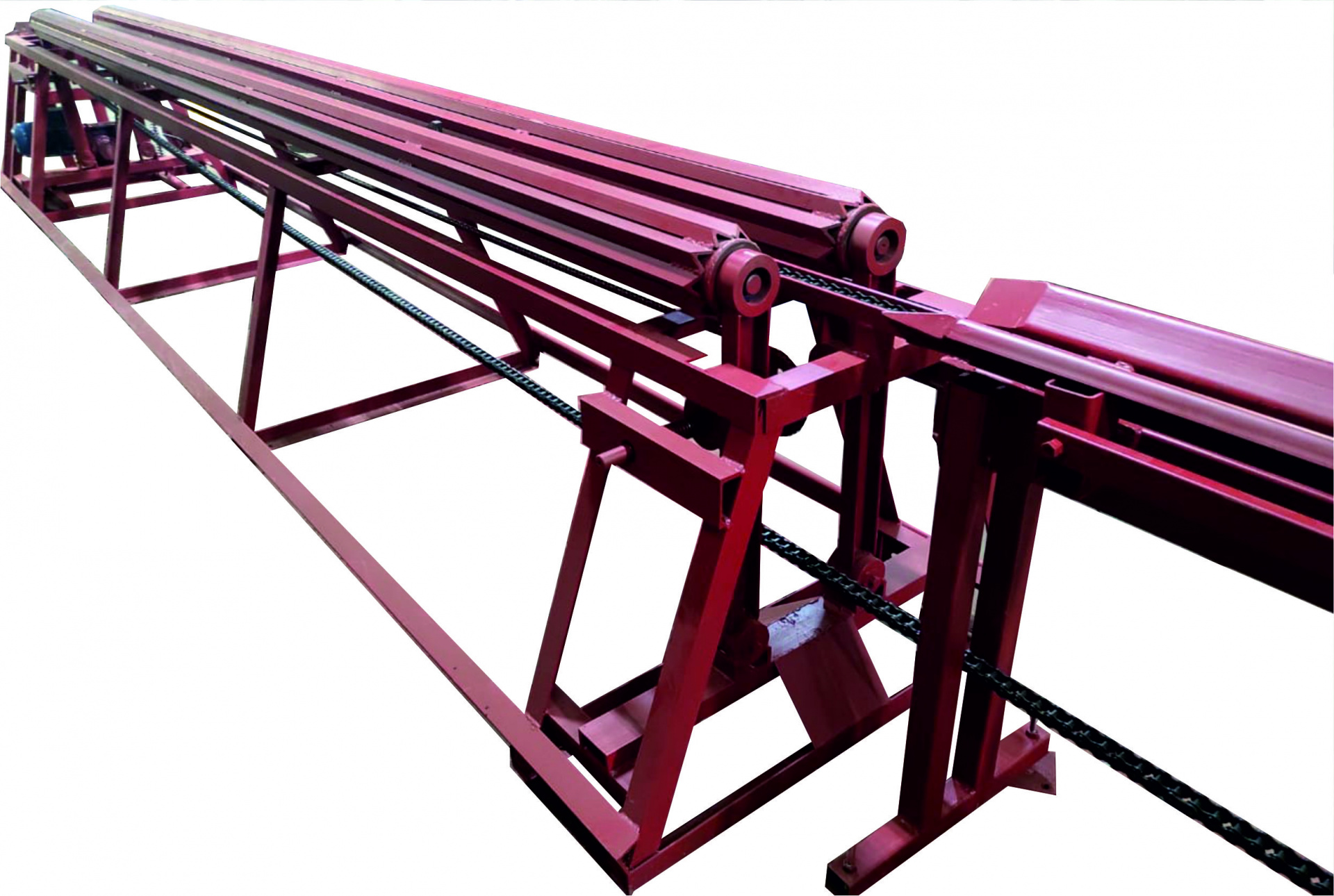 Очень полезной опцией брусовальных станков "СЛД-2п-1000" являются вытяжные "зубастые" рябухи, привод которых синхронизирован с приводом подачи бревна в зону пиления. Наличие этих рябух позволяет поддерживать пакет распиленного материала на выходе из станка, делает работу по приемке распиленной продукции более простой и безопасной для персонала, и позволяет автоматизировать весь процесс работы линии по распиловке крупного леса и тонкомера.