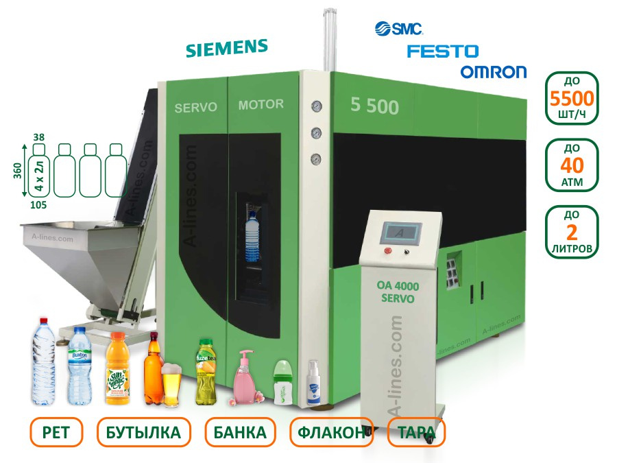 Производительность автомата выдува пэт бутылок, банок - до 5500 бутылок в час,