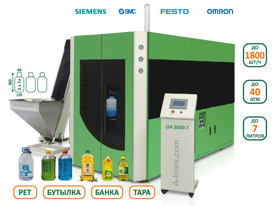 Автомат выдува ПЭТ бутылки ОА 3000-7, 5 литров с загрузчиком преформ,