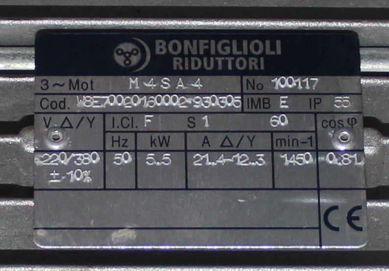 Мотор-редуктор Bonfiglioli 5.5 кВт, новый (с консервации). Италия. В наличии.