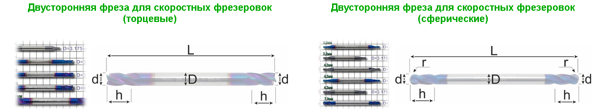 Сферическая фреза с алмазным покрытием, двухзубая и трёхзубая