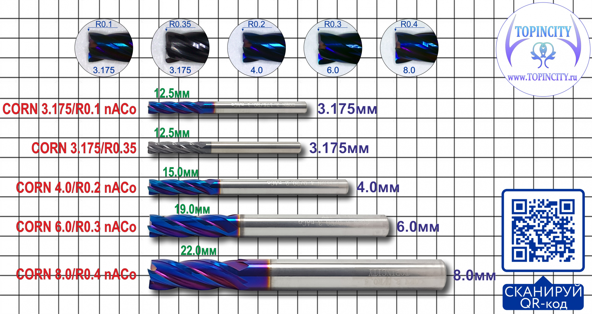 Назначение: Во многих проектах требуется получить более высокое качество шлифовки горизонтальных поверхностей не уменьшая шаг (без сильных полос). Это делается такой специальной фрезой. Она похожа на торцевую, но с достоинствами сферической фрезы и имеет закруглённые углы с необходимым радиусом скругления. В проектах изготовления форм для литья просто не обойтись без такой фрезы, т.к. в острых углах формы для литья расплав прилипает, и это приводит к повышенному браку отлитых заготовок. Такой фрезой можно пользоваться точно также, как и в обычных проектах с торцевой фрезой, но как правило с этой фрезой получаются всегда намного аккуратнее изделия. Это хорошо заметно на изделиях из древесины (нет ворса в углах и резких полос при черновой обработке), пластиках (нет белой окантовки в углах) и алюминии (нет рваных краёв). Если Вы часто вырезаете заготовки, то наверняка заметили, что, опускаясь слоями в заготовку, например, по 1 мм обычной торцевой фрезой, на краях заготовки будут полоски с этим расстоянием, а этой фрезой никаких полос не будет. Попробовавший однажды в работе такую фрезу, как правило отказывается навсегда от обычных торцевых фрез. Фрезой можно обрабатывать все материалы от закалённой стали, нержавейки до древесины и пластиков. Фреза более надёжна чем стандартная без радиусов при обработке твёрдых материалов и критических нагрузках на углах ножей, особенно на нержавеющих сталях, титане и сплавах.