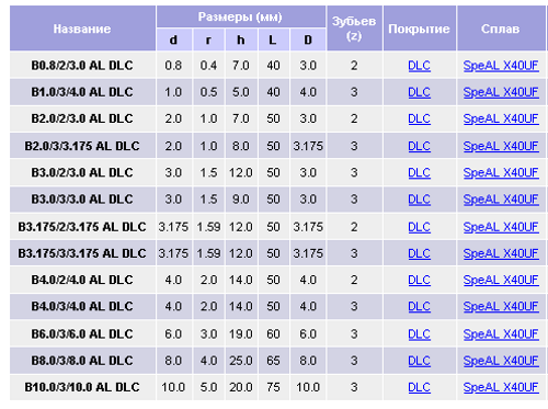 Сферические фрезы для алюминия и дюраля с алмазным покрытием