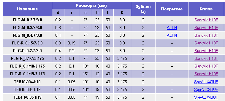 Назначение моделей фрез FLG и TEB10: