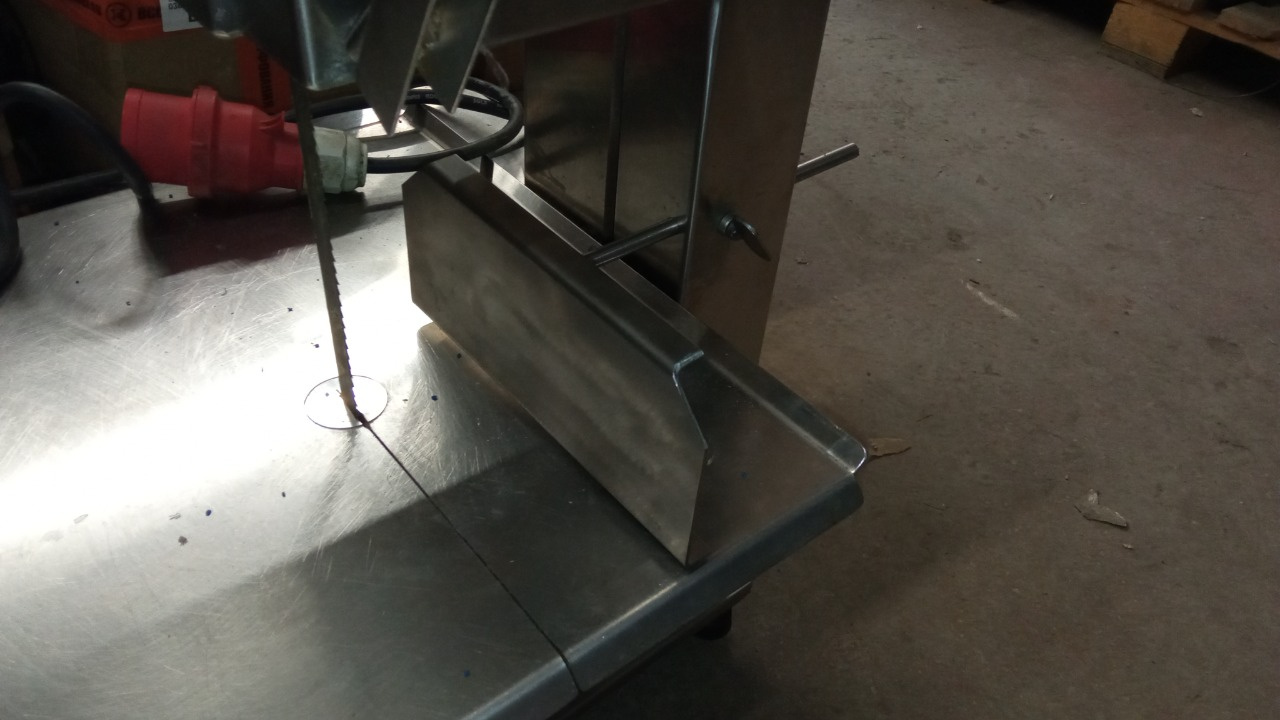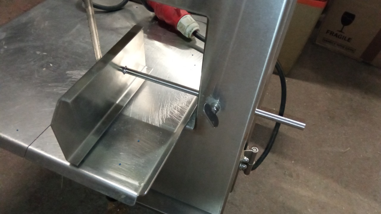 Настольная модель, оснащенная неподвижной рабочей поверхностью. Она невелика по размерам, но имеет все характеристики и компоненты большой ленточной пилы.
