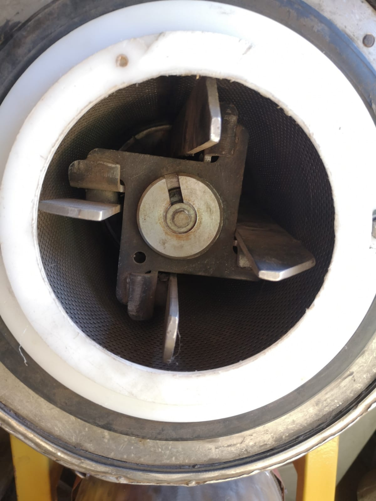Для подачи в рабочую зону пара, предотвращающего окисление перерабатываемого продукта, в корпусе агрегата для протирания предусмотрено отверстие, заглушенное пробкой.