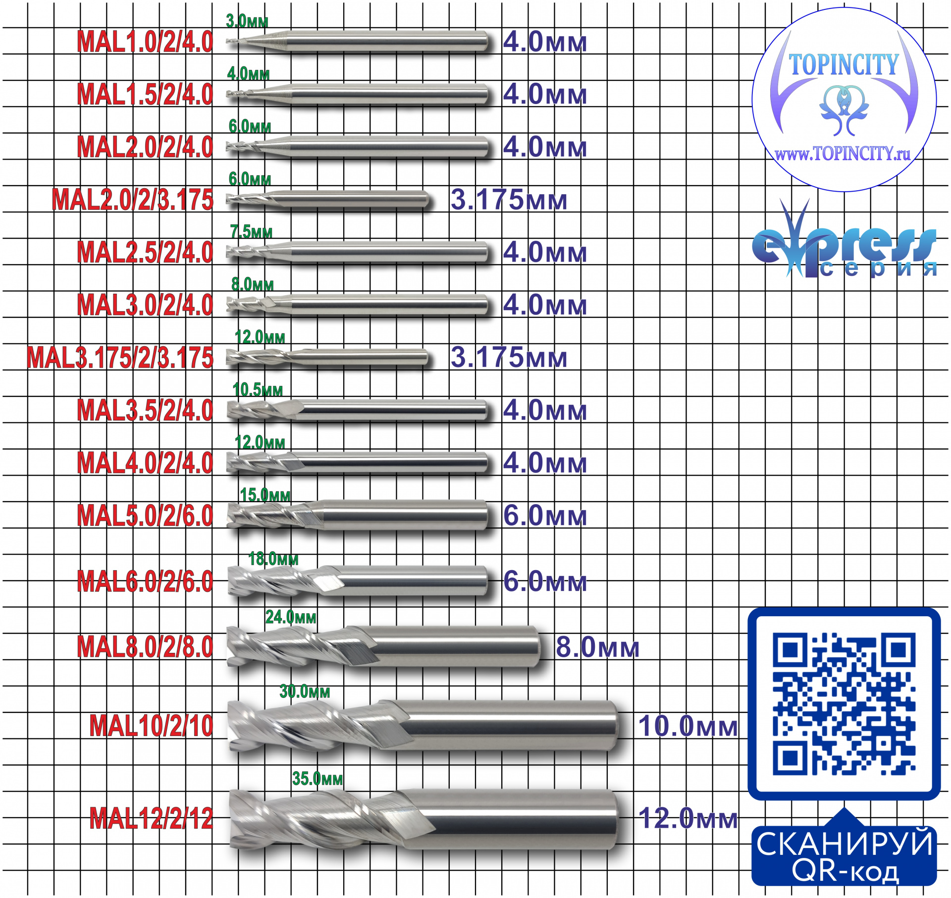 Концевые цилиндрические твёрдосплавные фрезы широкого применения